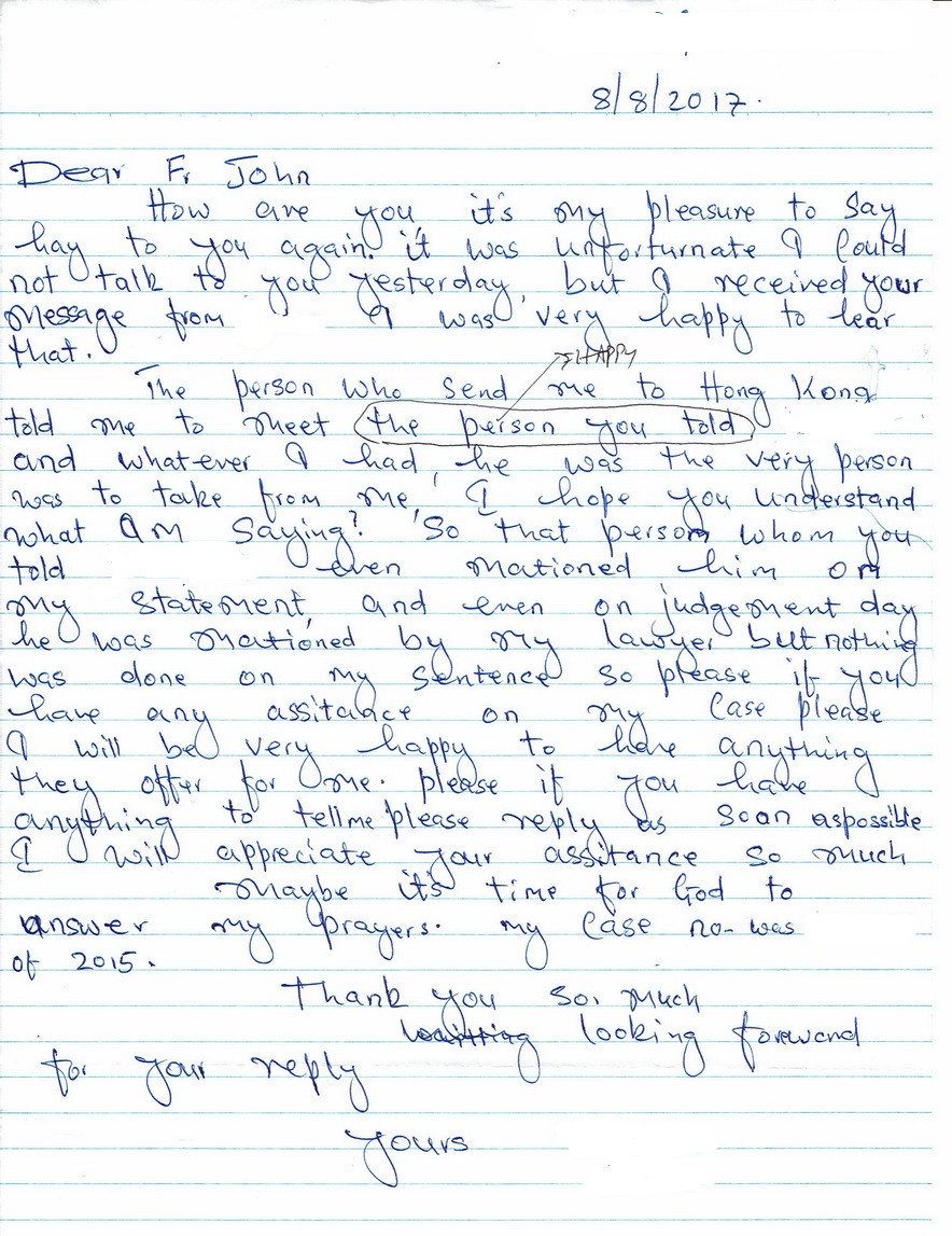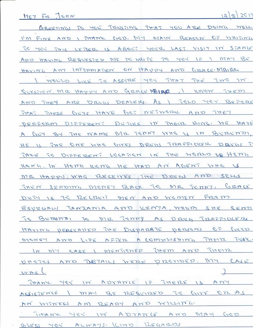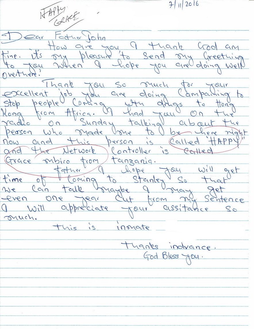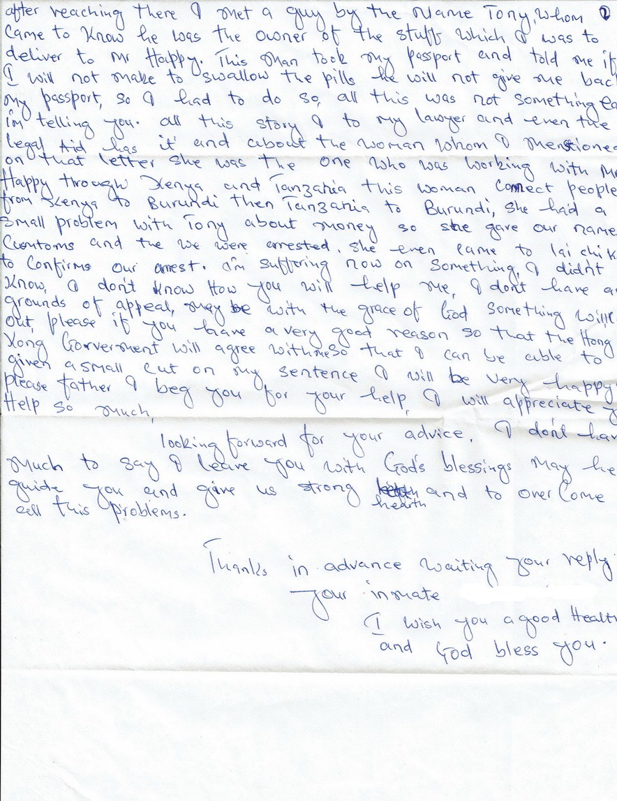 E: Many of the 40+ Tanzanians in prison in HK have info re Grace and Tony. Just two here: