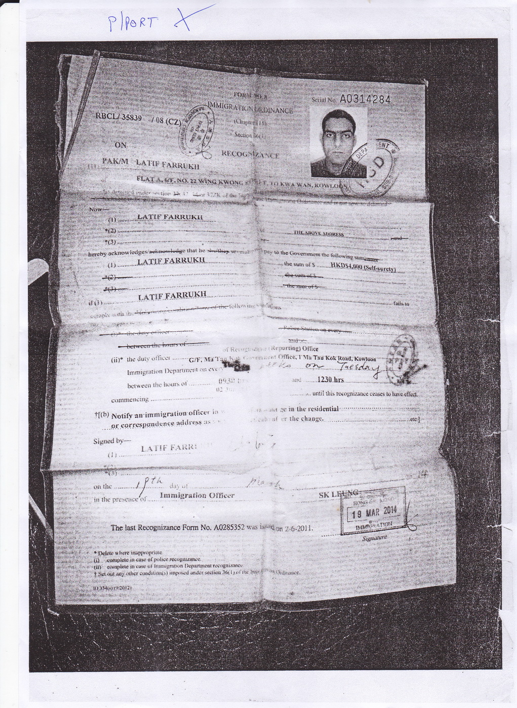 His previous address: Flat C, 14/F, Lucky (!) Plaza, Kwai Lam Court, Shatin.