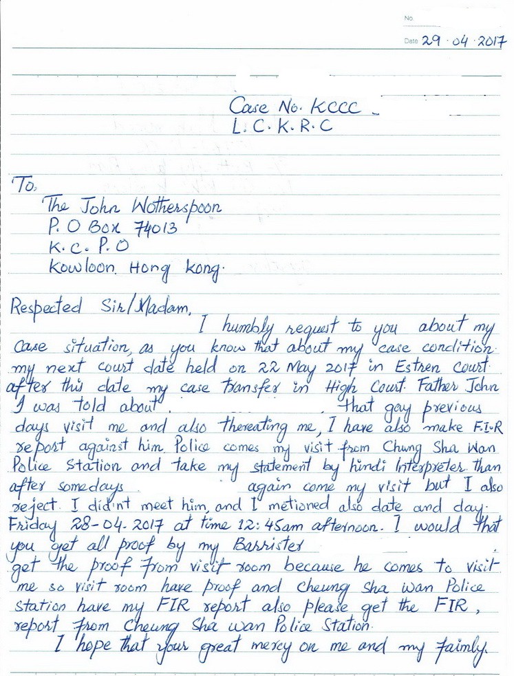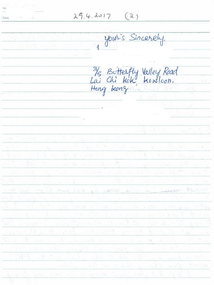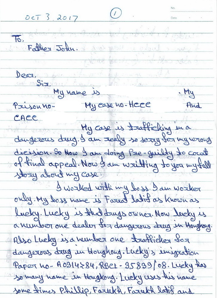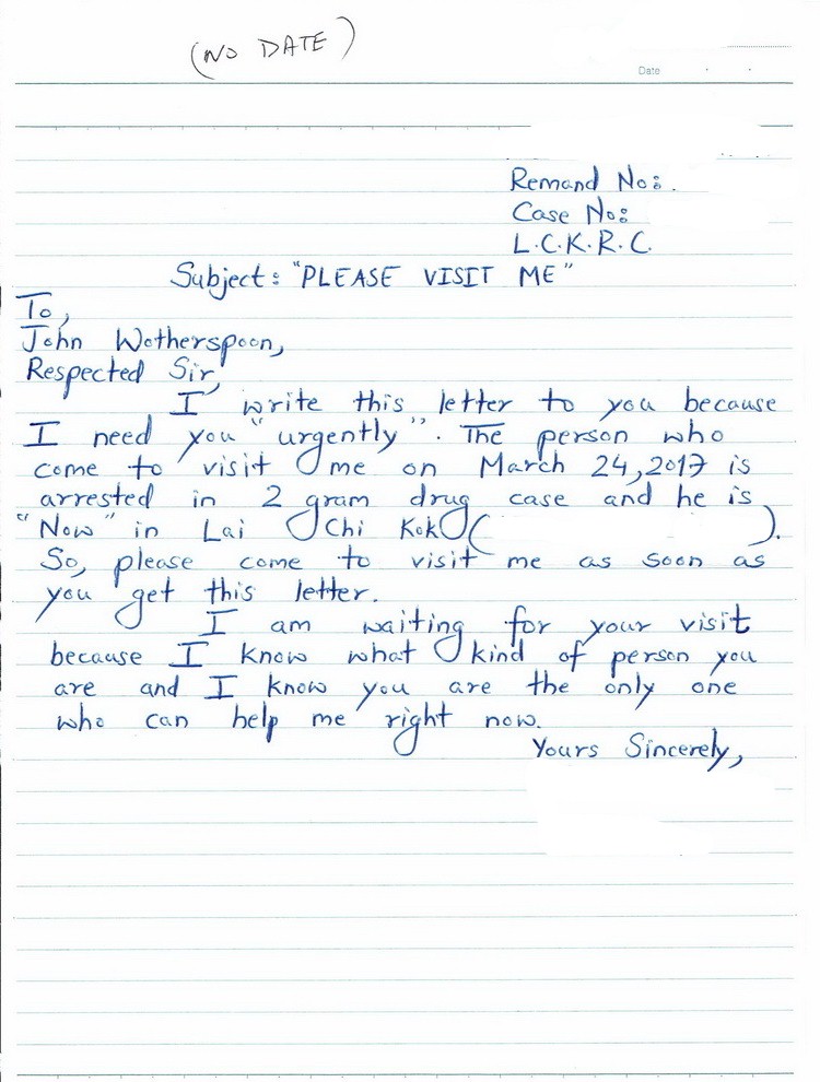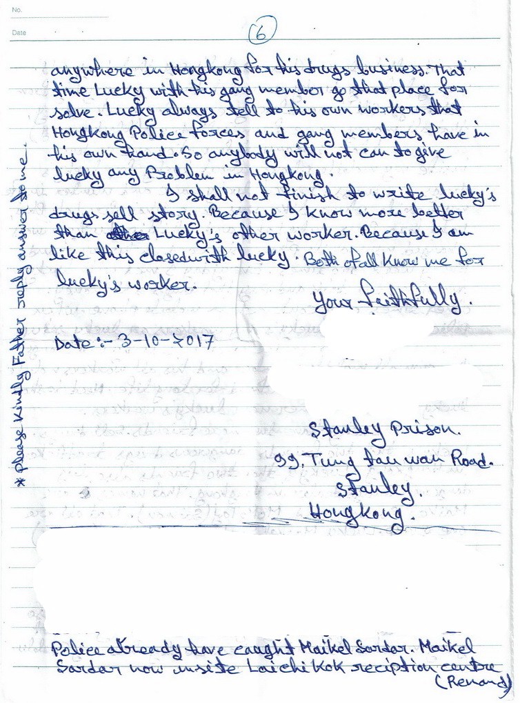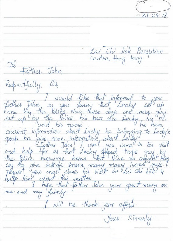 A: This letter of June 21, 2018 from an inmate at Lai Chi Kok Reception Centre sums up what Lucky continues to do: