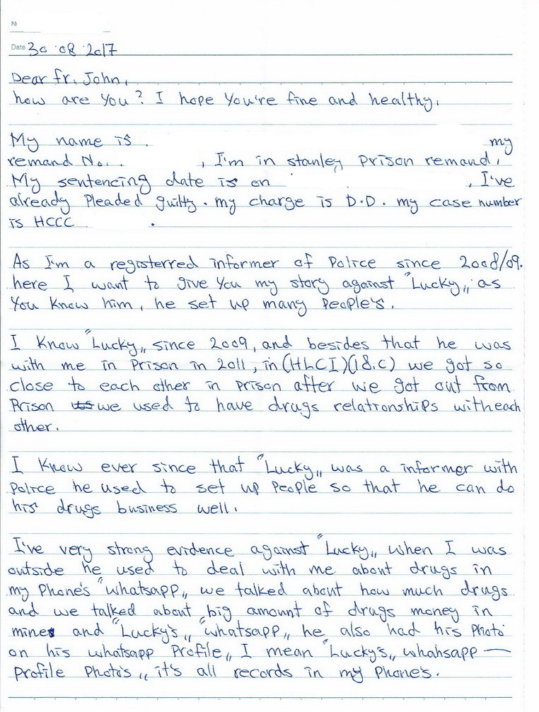 J: Letter from another asylum seeker, who himself was a registered police informer - willing to testify against Lucky: