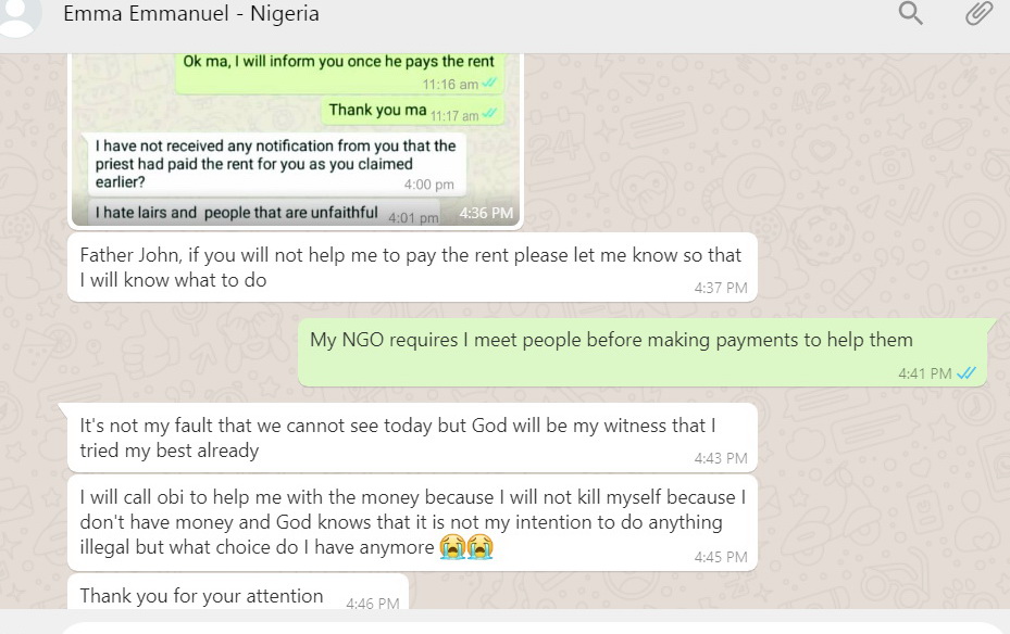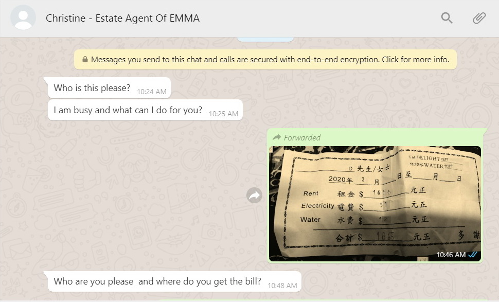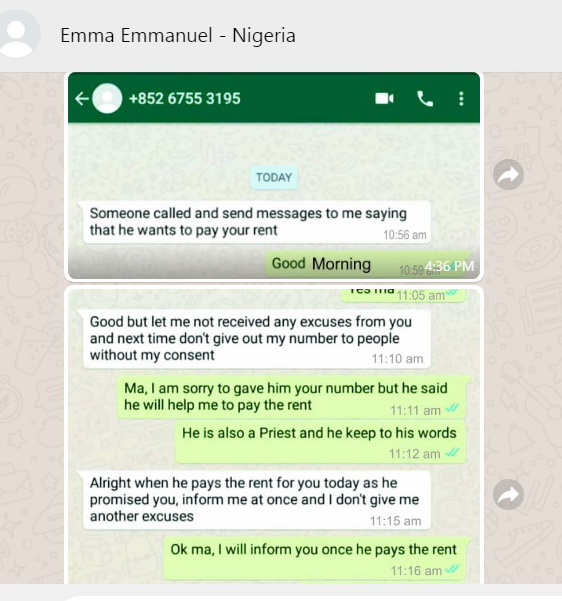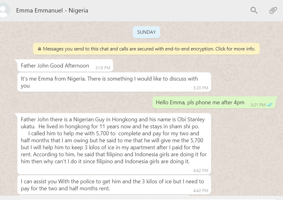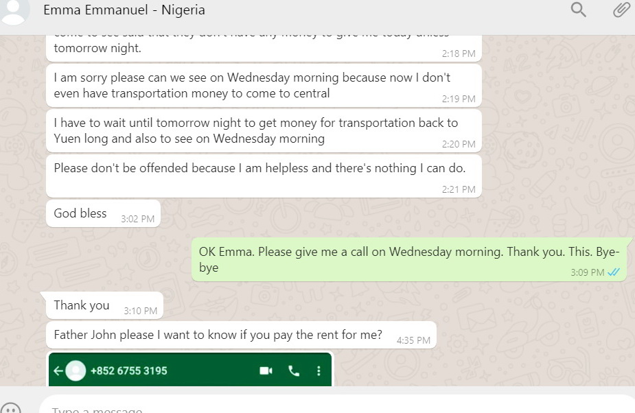 Sunday, June 21: I did not know who "Emma" was. Emma did not phone me after I asked him to phone after 4pm. Instead he sent more messages from his number: +852 6178 1490