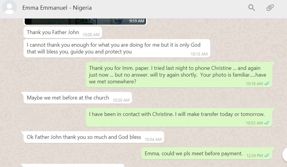 Usual scam language .... "not able to meet":