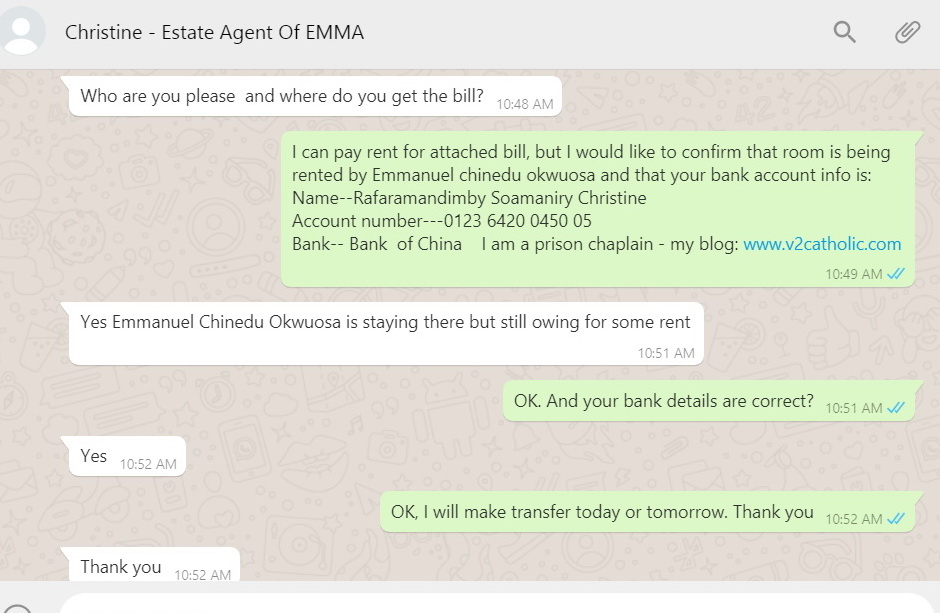 Message below possibly indicates that need to pay rent was genuine?